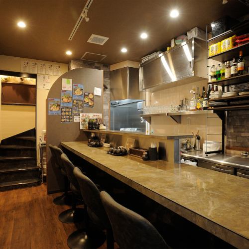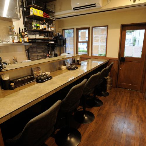 1階にはカウンターのお席を5席ご用意しております。お一人様でのお食事やランチなどお気軽にお食事いただけます。